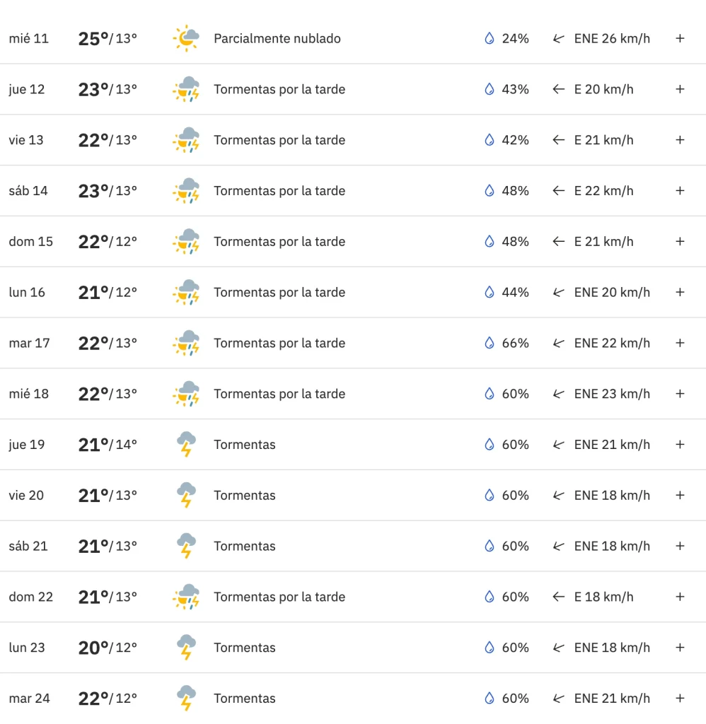 Del 10 al 20 de junio, se prevén chubascos intermitentes principalmente en las zonas del Altiplano, Pachuca-Tizayuca, Valle del Mezquital y Tepehua, con probabilidades de precipitación que alcanzan el 90% en varias fechas.
