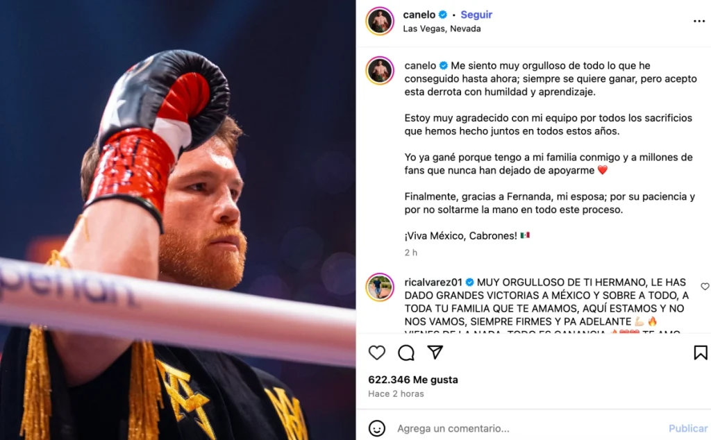 El púgil mexicano dijo que acepta la derrota con humildad, agradeció a su equipo y subrayó el apoyo de su familia y aficionados. También lanzó un “¡Viva México, cabr**es!” en su mensaje.